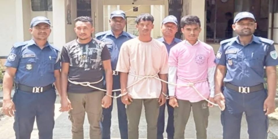 The arrested individuals are Mehedi Hasan (25), son of Mohibur Rahman; Maruf Mia (21), son of Alamgir; and Tausiq Mia (22), son of Jahangir—all residents of Balijuri Naya Hati village under Balijuri Union in the upazila.