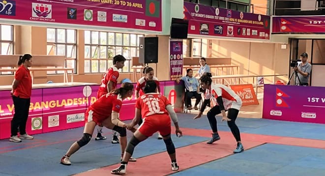 The match, held at the Taekwondo Hall in Satdobato, Lalitpur, saw the Nepali players maintain their momentum from the previous game. From the start, Nepal displayed confidence, while the Bangladeshi team worked hard to overcome travel fatigue and deliver an improved performance. Compared to the first match, the Bangladeshi players showed better pace today.