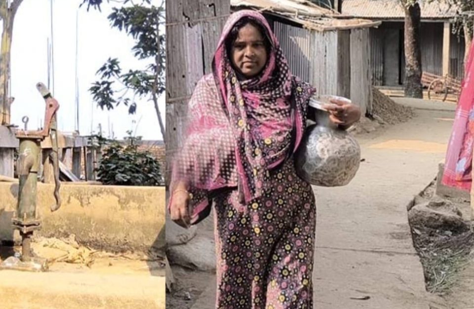 In Shimulbak village of Shantiganj upazila, Jharna Begum was seen heading out with a pitcher in search of drinking water. She must travel several kilometers to fetch a single pitcher of water for her family.
