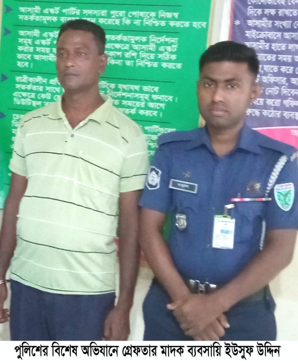 The arrested drug dealer Yusuf Uddin is the son of the deceased Sharbat Ali of Shatmarpar village. On Wednesday afternoon, the police showed him to be arrested in a case under the Narcotics Control Act and sent him to jail through the court.