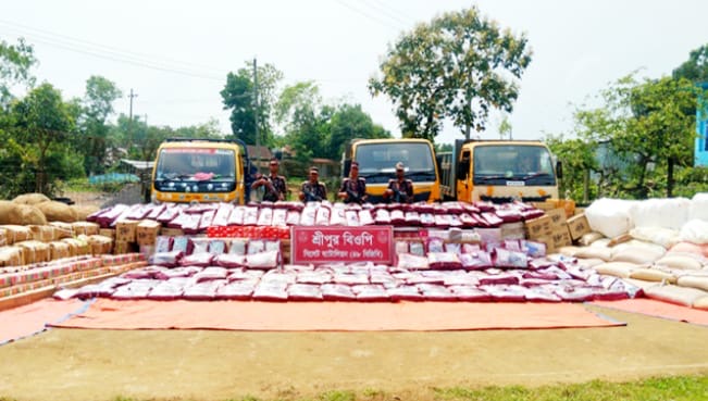 A F M Asad Ullah Asad: A large consignment of Indian smuggled goods, valued at approximately six crores, has been seized by the Border Guard Bangladesh (BGB) from Sylhet’s border area.