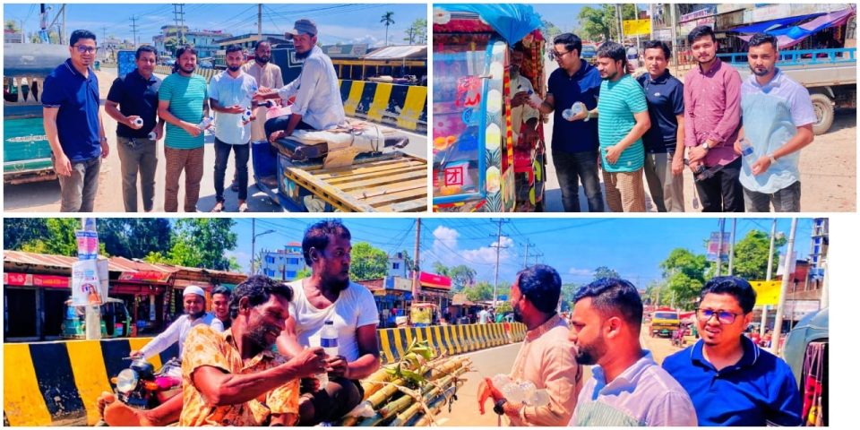 Ashfak Ahmed, Borlekha (Moulvibazar) Correspondent: The Baralekha Upazila branch of the national social-volunteer organization Nirappa Sarak Chai (Nischa) stood by the transport workers, pedestrians and working people in the intense heat. This program has been taken up on the instructions of Nischa founder film actor Elias Kanchan, keeping in mind the issue of intense heat in the country.