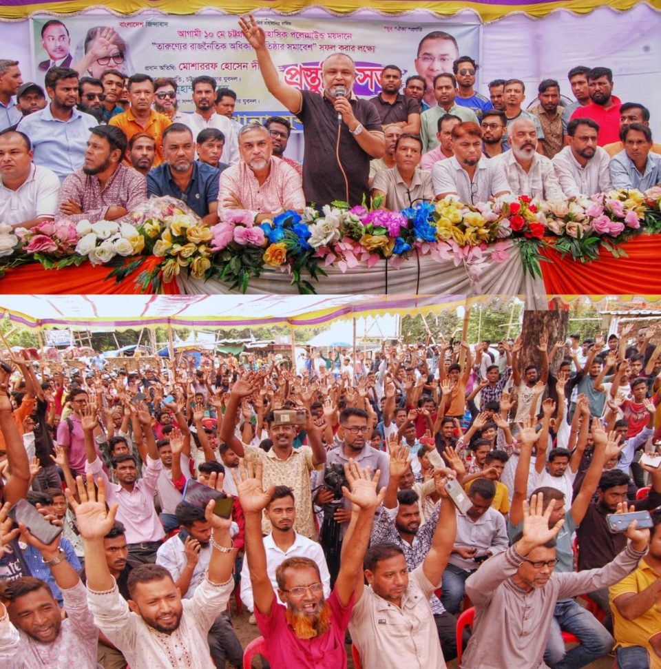 Presided over by former convener of Khulshi Thana Jubo Dal Md. Helal Hossain Helal and moderated by former senior joint convener Ashiq Mallick, the meeting was attended by former senior vice president of Chittagong Metropolitan Jubo Dal Iqbal Hossain, former vice president Shahed Akbar, Fazlul Haque Sumon, Abu Sufian, former joint secretary Habibur Rahman Masum, former joint secretary Shahjalal Palash, Tanvir Mallick, former treasurer Nur Hossain Ujjal, publicity secretary Zillur Rahman Jewel, office secretary Muhammad Sagir, Mohammad Ali, Associate Editors Monowar Hossain Manik, Mohammad Yusuf, Shabab Yazdani, Abdul Karim, Sakhawat Kabir Suman, On May 10, 2025, the chief guest at the preparatory meeting organized by Khulshi Thana Jubo Dal to make the “Rally for Establishing the Political Rights of Youth” a success was: Mr. Mosharraf Hossain Deepti-Former President, Chittagong Metropolitan Jubo Dal