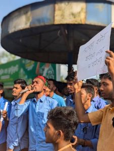 Ahmed majid ittija Chittagong: Polytechnic students across the country have taken to the streets, boycotting ongoing mid-term exams to press their six-point demands. They have expressed solidarity with all polytechnic institutes nationwide through blockade programs. Students from the Bangladesh Sweden Polytechnic Institute have also actively participated in the protest.