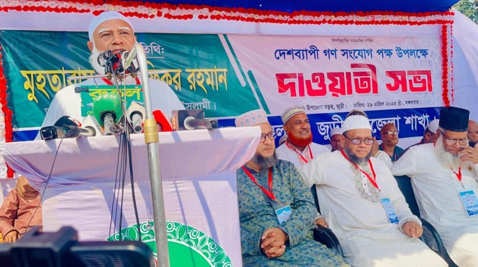 As part of the nationwide public engagement campaign, the Ameer of Bangladesh Jamaat-e-Islami, Dr. Shafiqur Rahman, addressed a Da’wah meeting organized by the Juri Upazila Jamaat on Tuesday (April 29) at the Juri Upazila premises. In his speech as the chief guest, he stated, “We are not fighting to become President, Prime Minister, Minister, Member of Parliament, village council members, councilors, or mayors. We are fighting for the salvation of humanity in this world and the hereafter.”